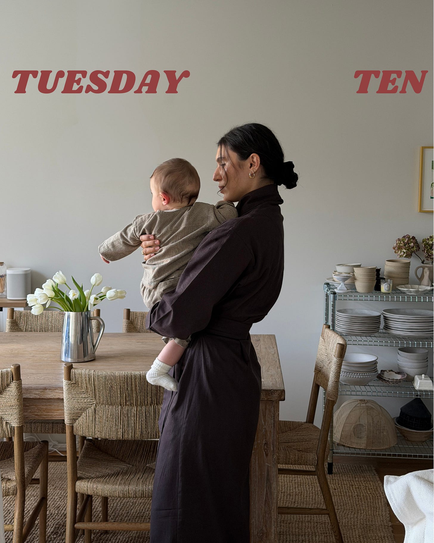 Now that Cosmo goes down consistently at 7PM we have some of our evenings back. We usually have dinner right away and then I scramble to do all the work and life admin I haven’t done during the day (screens all with a red light filter), watch a bit of Love Story, get ready for bed, play NYT Games, reflect on my day with a quick journal, use magnesium butter and read a few pages of a book before falling asleep! Sometimes there’s a dream feed in there too, but we’re trying to drop it!